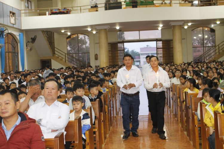 Đoàn rước trọng thể bắt đầu cho Thánh lễ được bắt đầu từ tiền sảnh tiến vào nhà thờ.
