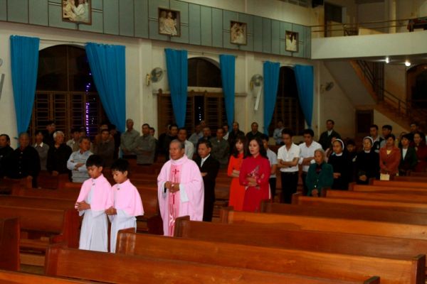 Trong bối cảnh Giáo hội Việt Nam đang sống trong năm với chủ đề :”Đồng Hành Cùng Các Gia Đình Trẻ”, sau lễ Thánh Gia Thất, vào lúc 4 giờ 45 thứ ba trước ngày lễ Hiển Linh, màu sắc và tâm tình Giáng Sinh còn in đậm, hang đá vẫn còn rực rỡ điện hoa, tại nhà thờ, cha quản xứ Giuse Trần Thế Thành đã dâng thánh lễ tạ ơn 25 năm hồng ân hôn phối cho anh chị Antôn Nguyễn Quốc Tuấn và Têrêxa Nguyễn Thị Kim Oanh, 25 năm tình Chúa đong đầy, anh chị hân hoan cùng với 4 người con 3 trai 1 gái dâng lời tạ ơn Chúa.