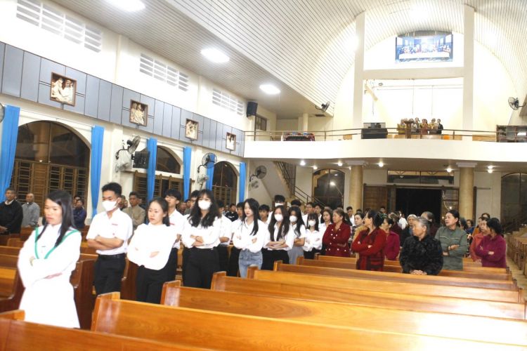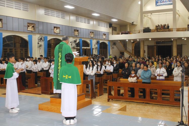 Kết thúc thánh lễ, cha quản xứ ghi hình lưu niệm với lớp, đồng thời trao giấy chứng nhận cho các học viên.