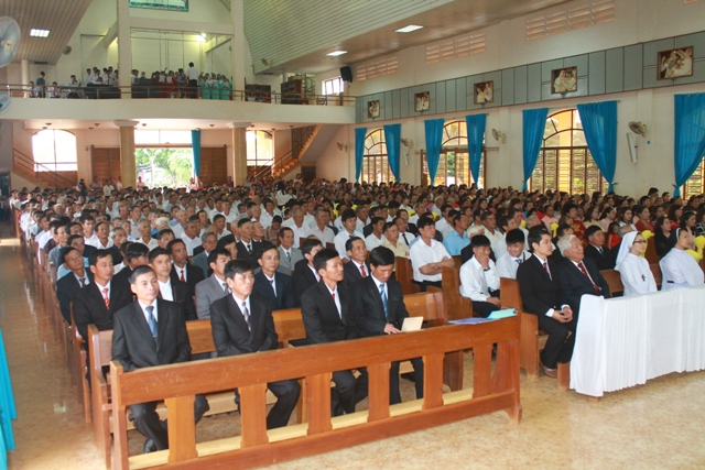 Sau thánh lễ, cộng đoàn cùng chia sẻ niềm vui với Tân Linh mục bằng bữa cơm thân mật tại khuôn viên nhà chung giáo xứ Thổ Hoàng.