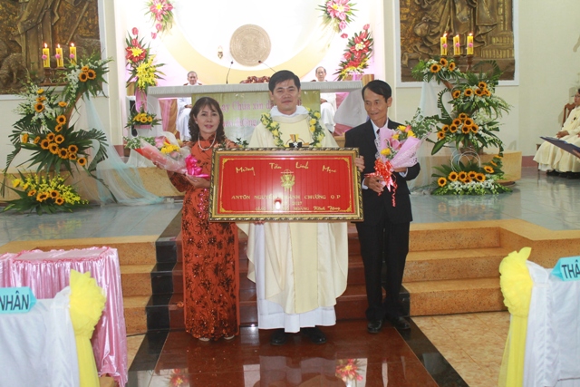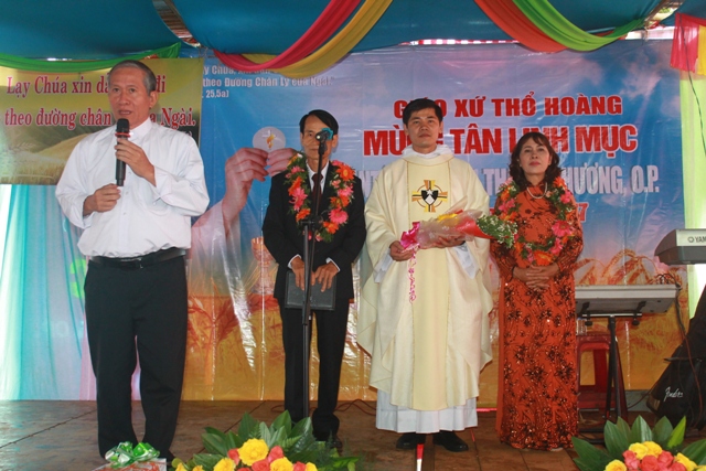 Tiếp sau vị đại diện thường vụ hội đồng giáo xứ gởi lời chúc mừng và tặng hoa cho ông bà cố, cha Antôn cùng quý cha tân chức, Tân linh mục Antôn xúc động cảm ơn cha quản xứ, quý cha đồng tế, cha bá phụ, quý tu sĩ nam nữ, quý ân nhân, thân nhân, quý hội đồng mục vụ, các đoàn hội và mọi người đã giúp đỡ, đồng hành cùng cha trong suốt chặng đường đã qua và đang hiện diện trong thánh lễ hôm nay. Ngài cũng xin mọi người tiếp tục cầu nguyện cho ngài được trọn đời trung thành với sứ vụ mà Thiên Chúa đã trao ban.