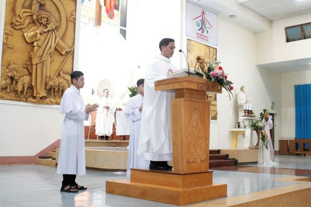 Cùng đồng tế với ngài có cha Quản xứ Giuse Trần Thế Thành và cha Fx. Trần Hữu Khương.
