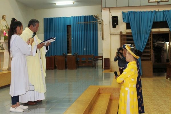 Sau bài giảng, 2 ông bà G.B. Nguyễn Văn Lan và Anna Nguyễn Thị Hường đã tiến lên trước cung thánh, trước mặt cha chủ tế, trước mặt con cháu và cộng đoàn xúc động nói lên lời tạ ơn Thiên Chúa và lập lại lời tuyên thệ trung thành mãi với giao ước hôn nhân mà 2 người đã tuyên thề cách đây 50 năm.