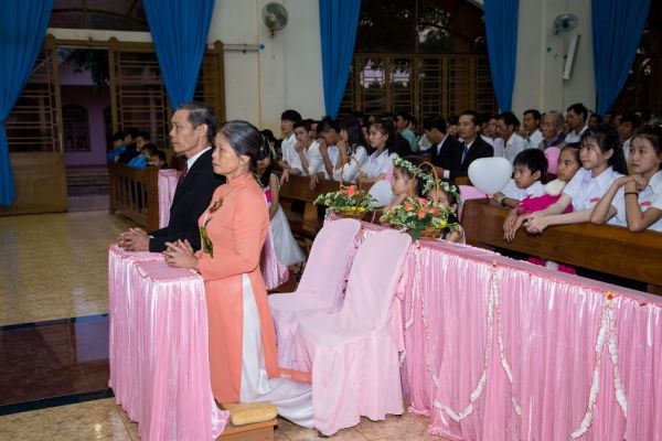 Thánh lễ có sự tham dự khá đông đảo của bà con giáo dân và con cháu của ông bà Phêrô Nguyễn Văn Kỷ, mọi người hiện diện để hiệp thông lời tạ ơn Thiên Chúa vì hồng ân 50 năm 2 ông bà sống đời vợ chồng, nhờ ơn Chúa họ đã vượt qua bao sóng gió cuộc đời, cả hai đã trở nên một trong Bí Tích Hôn Nhân, tay đan tay chung xây và kiên cường vượt qua mọi khó khăn chồng chất của đời thường, đặc biệt trong bối cảnh năm 1967 của thế kỷ trước, chiến tranh, kinh tế khó khăn, bà không biết chữ những gia đình vẫn đầy ắp lời kinh nguyện, luôn gắn bó và biết trông cậy vào Chúa trong mọi hoàn cảnh để giáo dục con cái, bà đã thuộc lòng từng lời kinh nguyện và truyền đạt các kinh nguyện cho con cái theo cách truyền miệng.