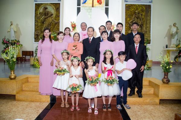 Kết thúc thánh lễ cha quản xứ đã ghi hình lưu niêm với đại gia đình ông bà Nguyễn Văn Kỷ.
