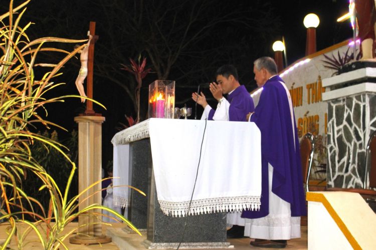 Thánh lễ do cha phó Augustino Phan Minh Danh chủ tế, và cha quản xứ Giuse Trần Thế Thành cùng đồng tế.