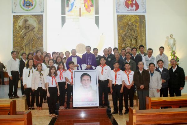 Di ảnh cha được 2 huynh trưởng kiệu lên và đặt dưới chân nến bên cạnh bàn thờ với những bông hoa nhỏ như tâm tình một bài thánh ca quen thuộc rất hợp với cuộc đời dâng hiến của cha:”Con muốn làm một bông hoa nhỏ, dưới chân bàn thờ ngày lễ thường, con muốn làm một bông hoa trắng, từng chiều vắng đơn sơ nguyện cầu.