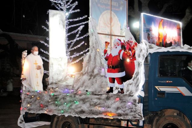Chiếc xe hoa nây được làm dựa vào lá thư chung của Đức Giám mục Giáo phân Vinh Sơn Nguyễn Văn Bản”….. Nếu chúng ta bị ngăn trở, không thể đến với Chúa, thì chính Chúa sẽ đến với chúng ta.” {THƯ MỤC VỤ - Ngày 06.12.2021}. Bởi thế sau thánh lễ vọng và lễ tối thứ bảy, cha quản xứ Giuse sẽ cũng Chúa Hài Đồng tới với tất cả mọi gia đình trong Giáo xứ.