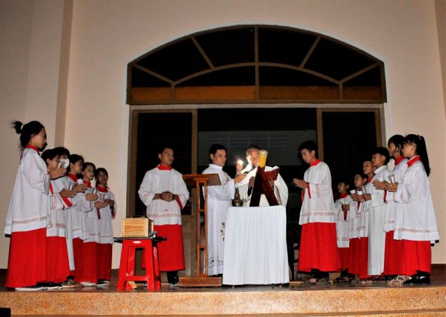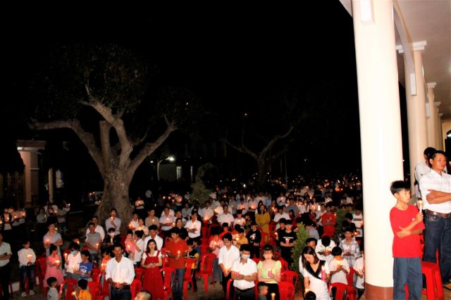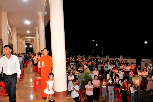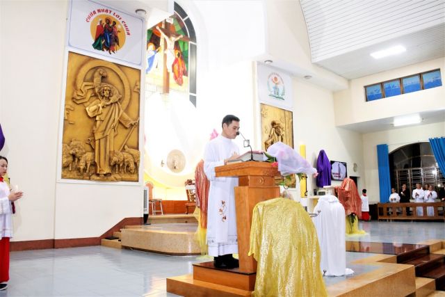 Lúc 19 giờ20 tối thứ bảy Tuần Thánh, cha quản xứ Giuse Trần Thế Thành đã long trọng cử hành thánh lễ Vọng Phục Sinh. Thầy Phó tế Augustino Phan Minh Danh phụ tế.