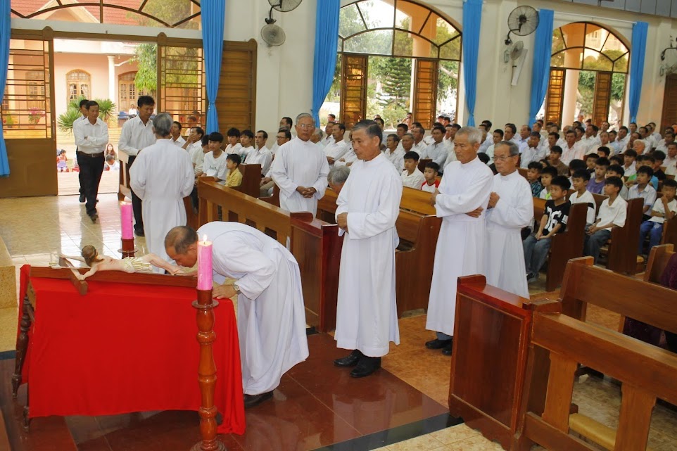 Hiệp cùng Giáo hội hoàn vũ, nghi thức tưởng niệm cuộc Thương Khó của Chúa Giêsu được cử hành long trọng vào lúc 16 giờ 45 tại nhà thờ giáo xứ Thổ Hoàng.