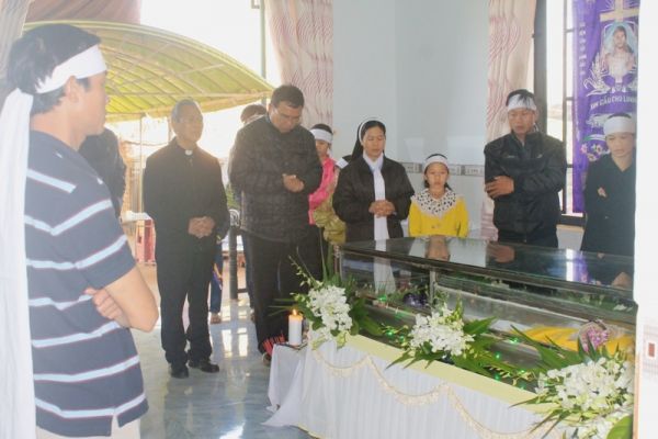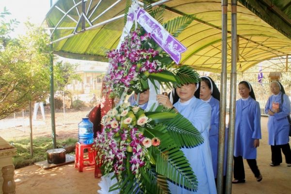 - Đúng 9 giờ , gia đình tang quyến đã vui mừng và cảm động được đức cha Vinh Sơn Nguyễn Văn Bản, Giám mục giáo phận cùng với cha quản lý Giuse Trần Văn Phúc tới phân ưu và thăm viêng gia đình tang quyến, đặc biệt nữ tu Maria Têrêxa Nguyễn Thị Xuân, người con của Hội dòng Đức Maria Nữ Vương Hòa Bình Giáo phận Banmêthuột.