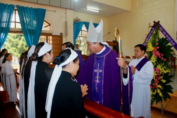 Thánh lễ do Đức cha Vinh Sơn Nguyễn Văn Bản Giám mục Giáo phận Banmêthuột chủ sự, cùng đồng tế có cha Tổng đại diện Stephanô Nguyễn Văn Đậu, Đức ông Đaminh Hà Duy Khâm, cha quản hạt Đakmil Phao Lô Nguyễn Thư Hùng, cha Giám tỉnh DCCT Giuse Nguyễn Ngọc Bích cùng quý cha trong và ngoài Giáo phận, quý cha DCCT.