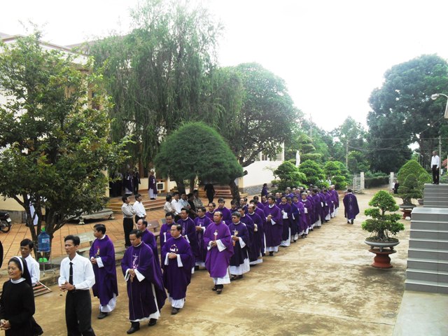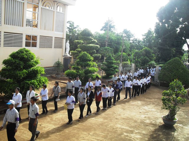 14 giờ cả đoàn bắt đầu hiệp dâng giờ kinh trước linh cửu của bà cố được quàn tại tư gia ở Giáo xứ Kim Châu, bầu khí của giờ kinh được diễn ra trong tình thần hiệp thông của anh em một nhà dưới mái ấm của một ngôi nhà chung Giáo xứ Thổ Hoàng.