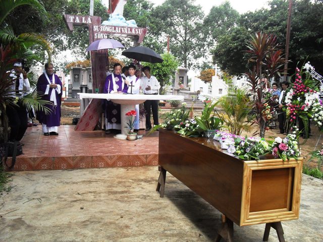 Thánh lễ kết thúc lúc 10 giờ, toàn thể cộng đoàn dân Chúa hàng lối chỉnh tề, nghiêm trang tiễn bà cố Maria ra Nghĩa trang chỉ cách nhà thờ chừng 500 mét.