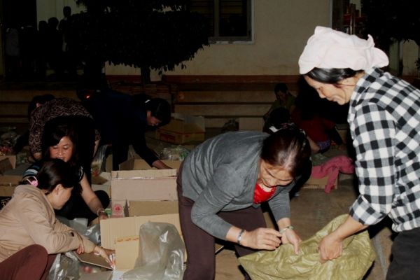 Cũng lúc đó bên ngoài hội trường các bà mẹ đang chuẩn bị 200 phần quà để chia sẻ hương xuân cho anh em giáo họ Đaksak dân tộc M'Nông và một số ít cho một số hộ khó khăn trong giáo xứ.