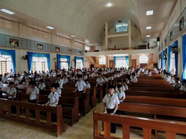 Sau thánh lễ vào lúc 8g45 đoàn TNTT tổ chức thi GL học kỳ 2, kết thúc học kỳ cho hơn 600 em từ sơ cấp cho đến khối vào đời.