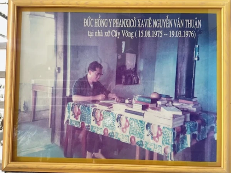 Bức ảnh này, mới được tìm thấy tại Việt Nam, ghi lại hình ảnh chụp Đấng Đáng Kính Văn Thuận đang ngồi viết bên bàn trong thời gian bị quản thúc tại gia năm 1975. Ảnh: do bà Elisabeth Nguyễn cung cấp.