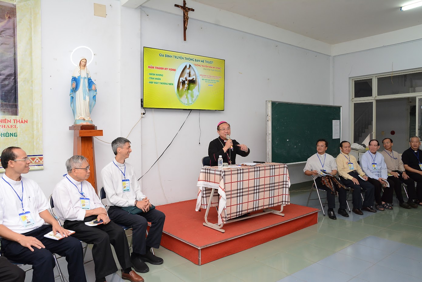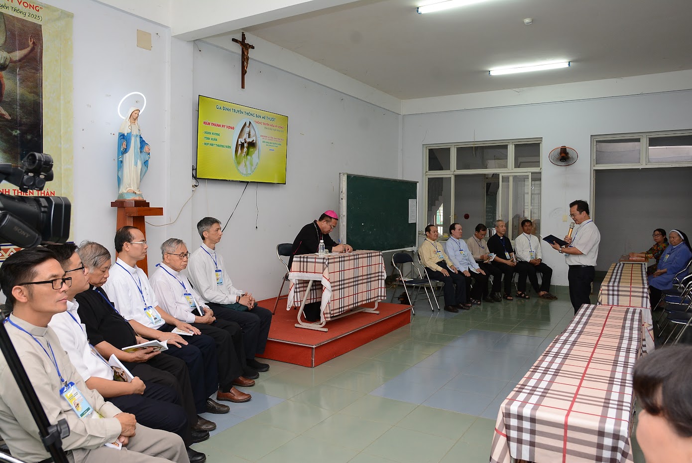 Sau phút thánh hóa, Cha Trưởng ban Truyền thông Giáo phận Ban Mê Thuột có lời chào mừng Đức Cha, Quý Cha và các Cộng tác viên Truyền thông về tham dự ngày Hội Truyền thông của Giáo phận năm 2025 với chủ đề: “THÔNG TRUYỀN NIỀM HY VỌNG” (dựa theo Sứ điệp Truyền Thông năm 2025).