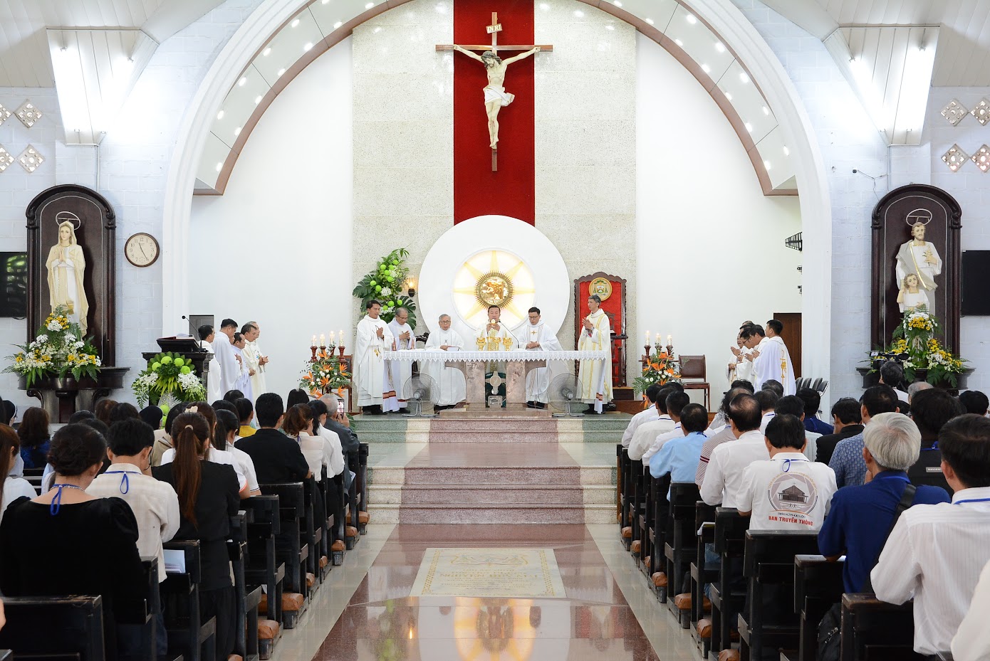 10g30, Tất cả tham dự viên tập trung vào Nhà thờ hiệp dâng Thánh lễ mừng kính Các Tổng lãnh Thiên thần Micael, Gabriel và Raphael. Thánh lễ đồng tế do Đức Cha Giáo phận chủ tế cùng với Quý Cha trong Giáo Phận. Qua lời mở đầu trước Thánh lễ và qua bài giảng, Đức Cha nói lên mối liên kết của ba vị Tổng lãnh Thiên thần với sứ mạng của Ban truyền thông: bảo vệ chân lý; loan báo niềm vui ơn cứu độ và chữa lành bệnh tật của tâm hồn.